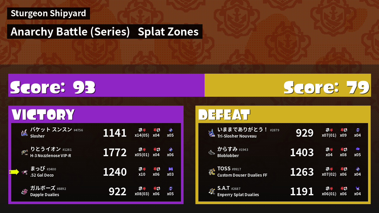 | Mode | Splat Zones - Anarchy Battle (Series) |