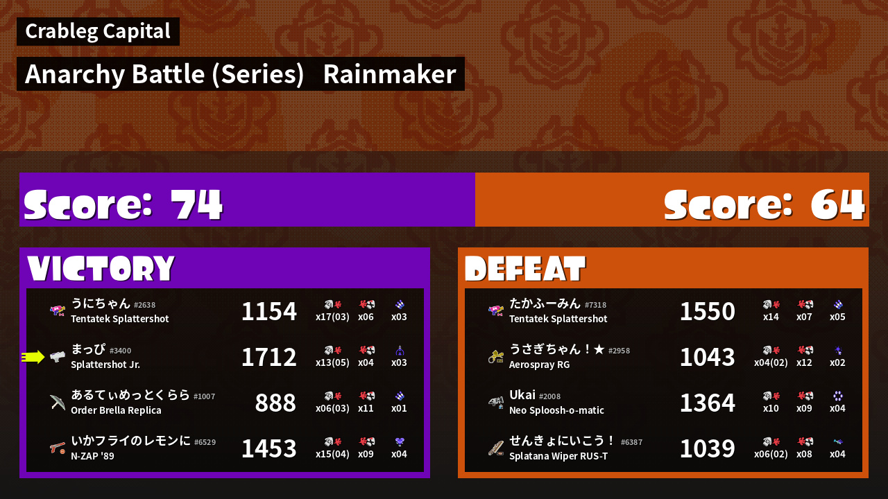 | Mode | Rainmaker - Anarchy Battle (Series) |