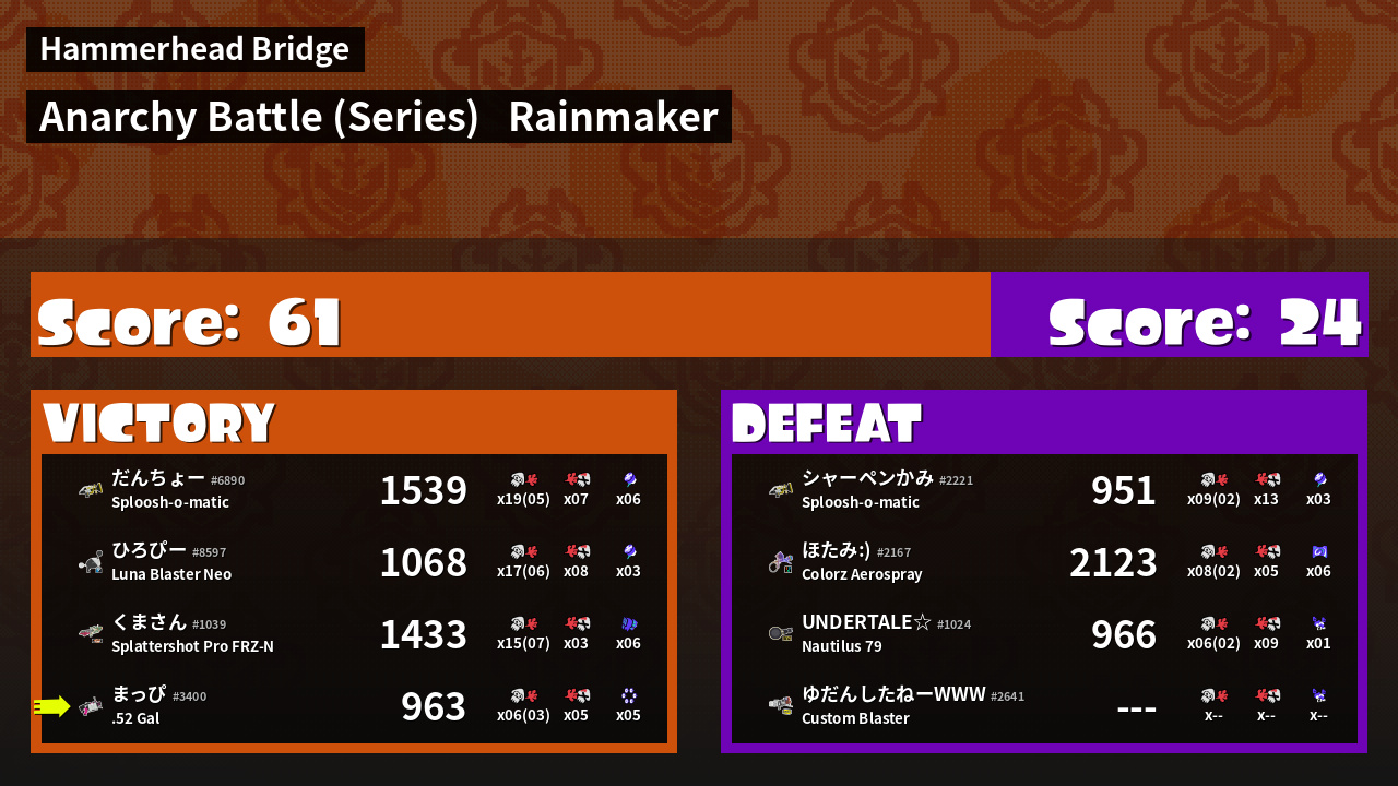 | Weapon | .52 Gal ( Splash Wall / Killer Wail 5.1) |