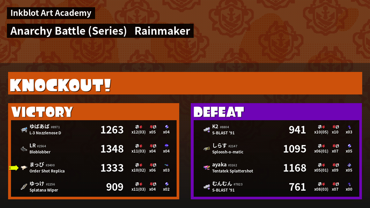 | Mode | Rainmaker - Anarchy Battle (Series) |