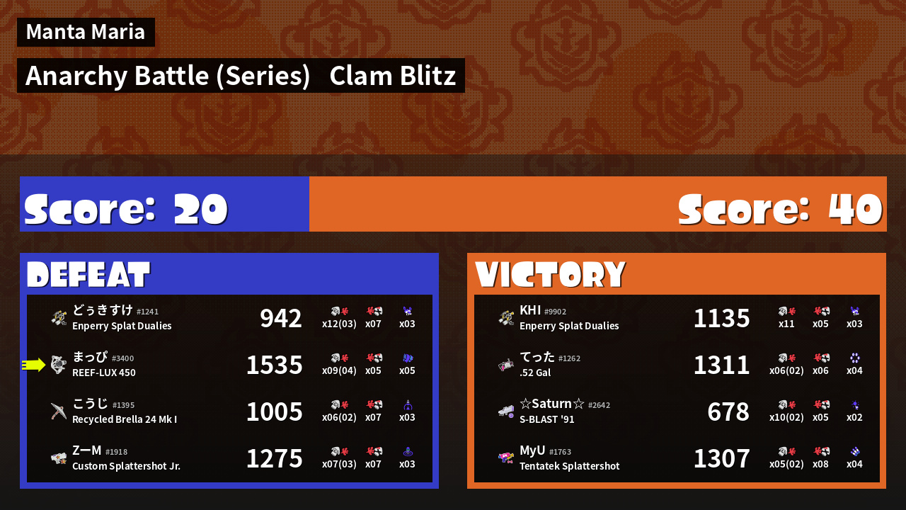 | Mode | Clam Blitz - Anarchy Battle (Series) |
