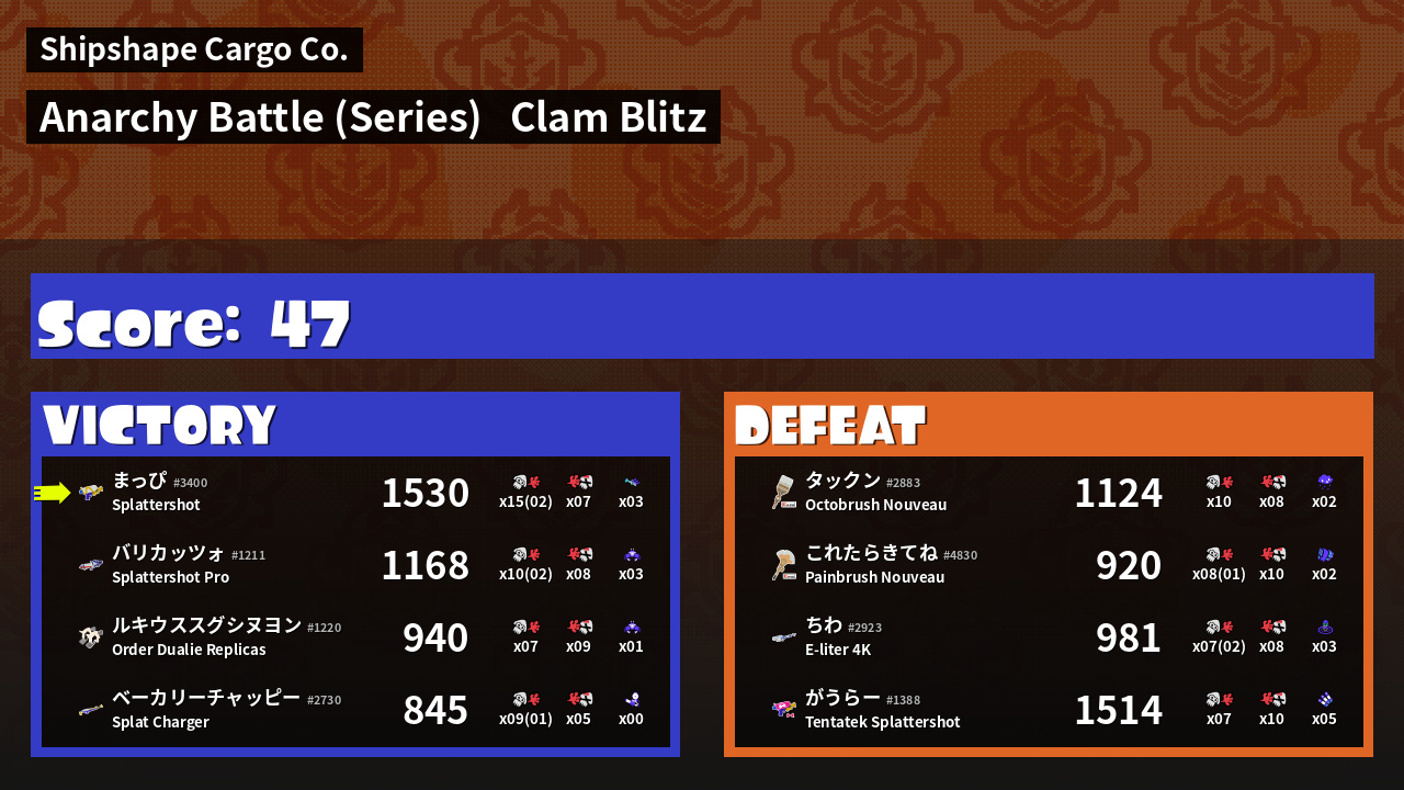| Mode | Clam Blitz - Anarchy Battle (Series) |