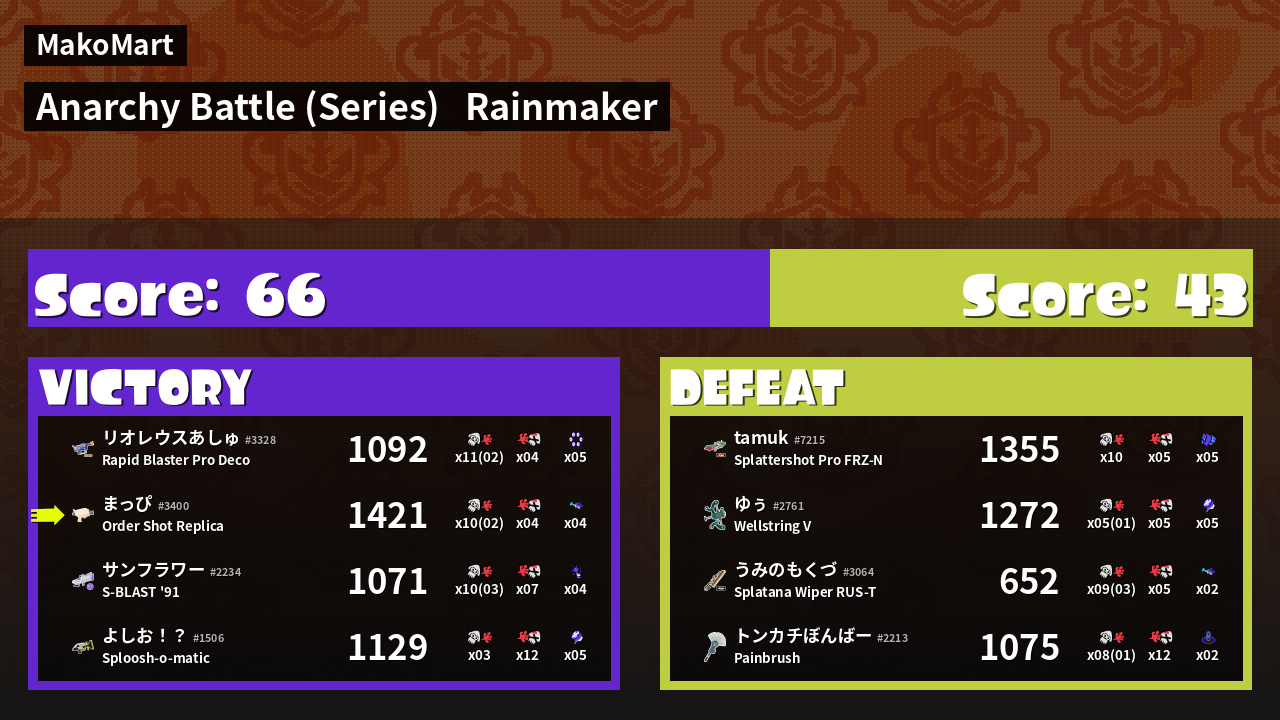 Results of まっぴ's Battle