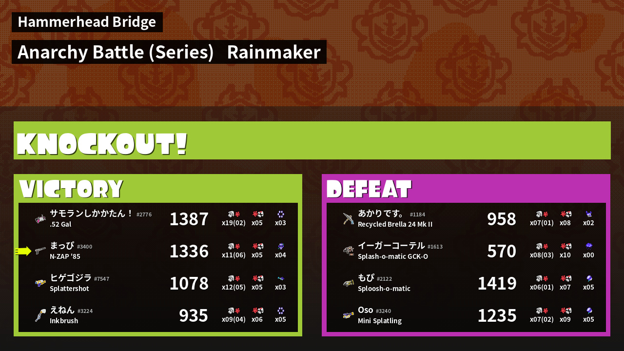 | Mode | Rainmaker - Anarchy Battle (Series) |