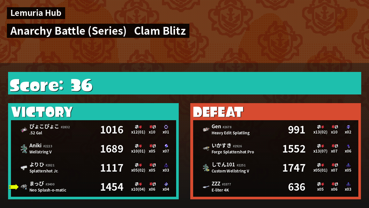| Mode | Clam Blitz - Anarchy Battle (Series) |