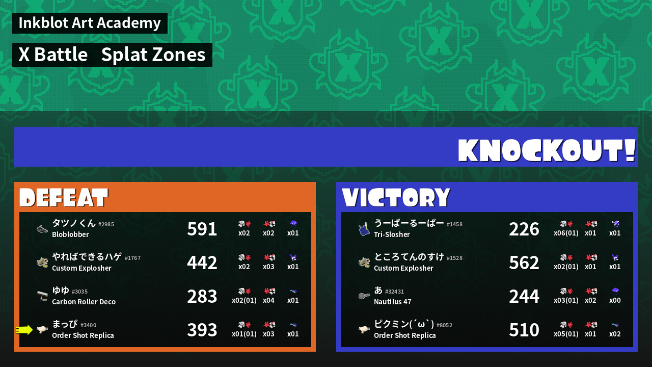 | Mode | Splat Zones - X Battle |