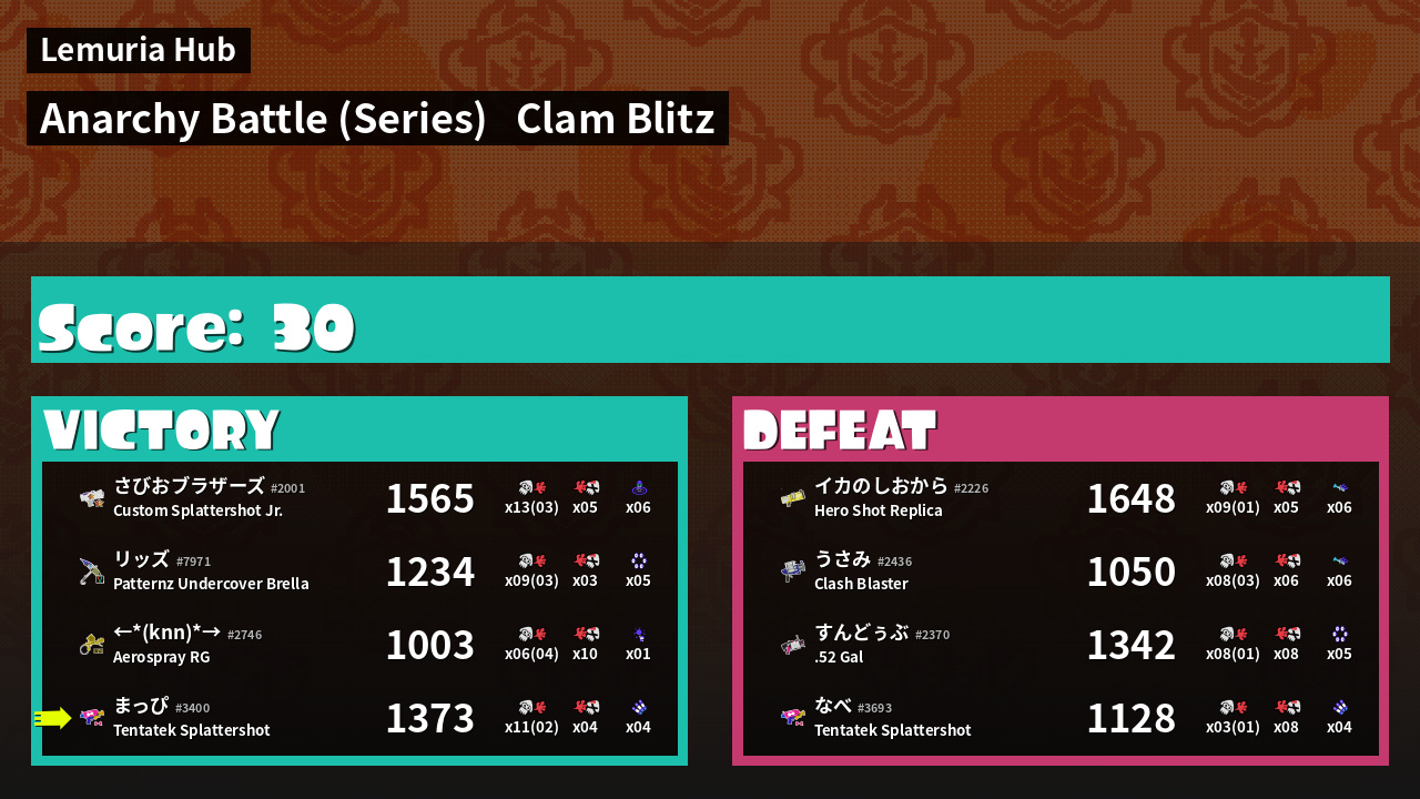 | Mode | Clam Blitz - Anarchy Battle (Series) |
