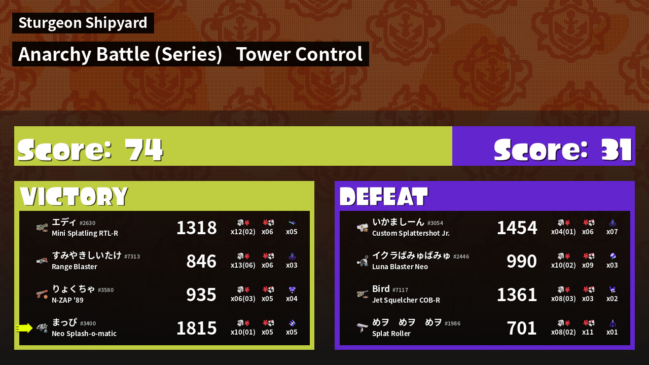 Results of まっぴ's Battle