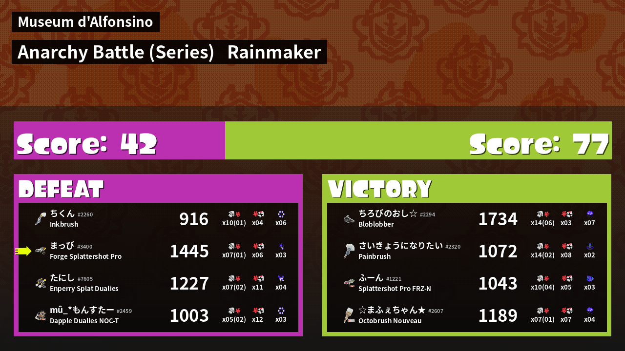 | Mode | Rainmaker - Anarchy Battle (Series) |