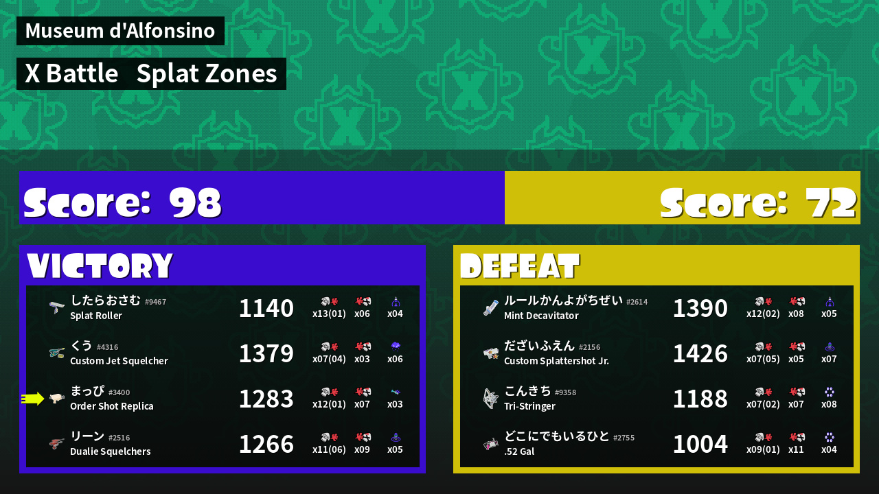 | Medals | #1 Splat Zone Guard #2 Overall Splatter #2 Turf Inker |
