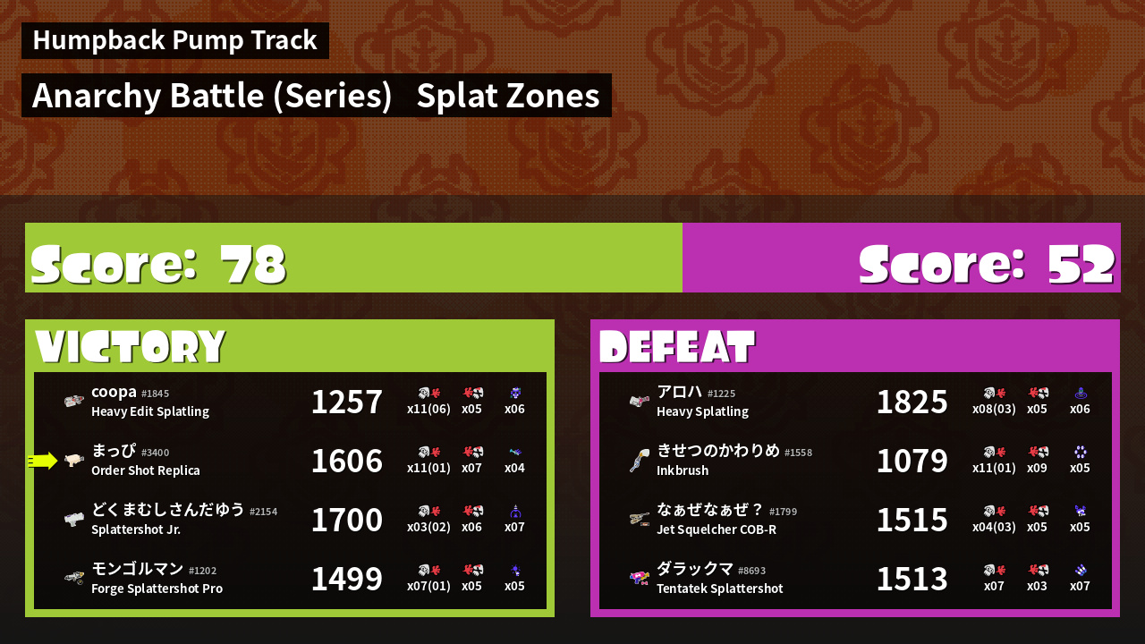 | Mode | Splat Zones - Anarchy Battle (Series) |