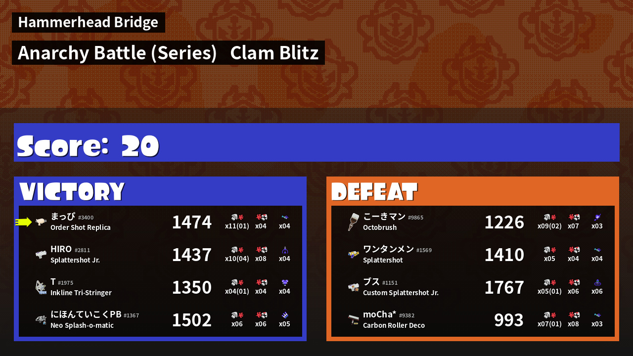 | Mode | Clam Blitz - Anarchy Battle (Series) |