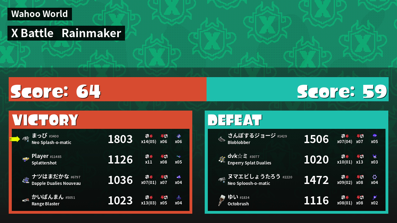 | Medals | #1 Overall Splatter #1 Score Booster #1 Turf Inker |