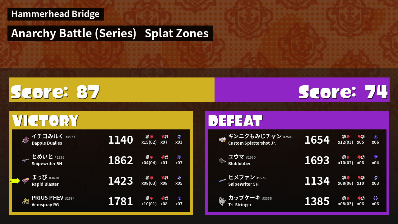 | Mode | Splat Zones - Anarchy Battle (Series) |