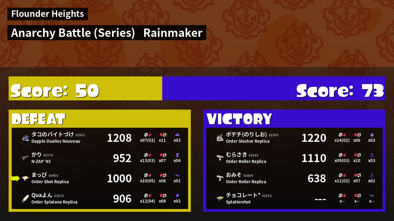 | Mode | Rainmaker - Anarchy Battle (Series) |