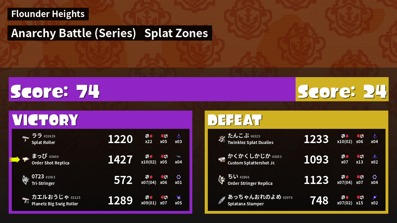 | Mode | Splat Zones - Anarchy Battle (Series) |