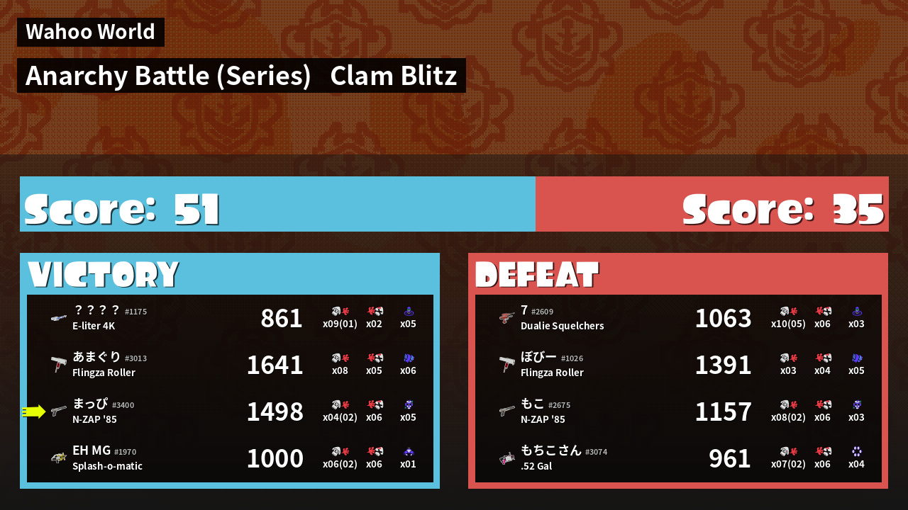 | Mode | Clam Blitz - Anarchy Battle (Series) |