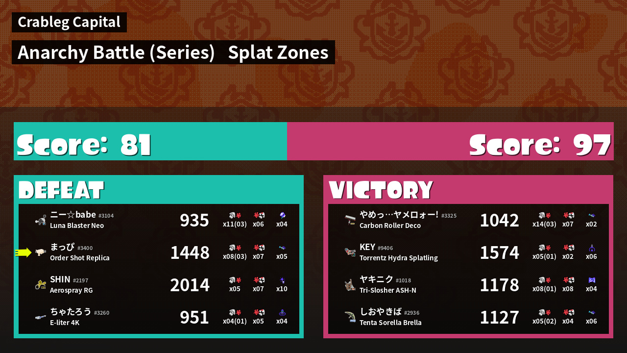 | Mode | Splat Zones - Anarchy Battle (Series) |