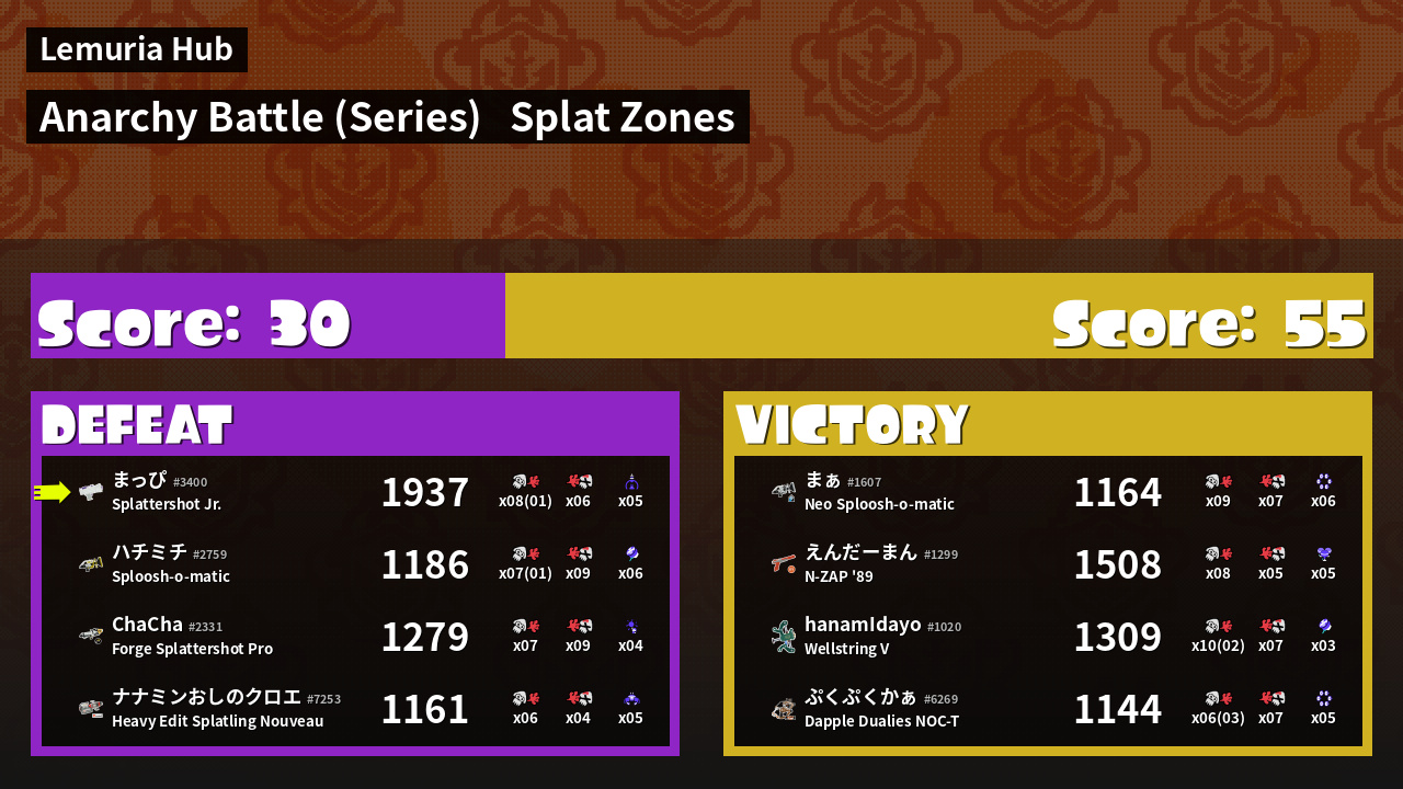 | Mode | Splat Zones - Anarchy Battle (Series) |