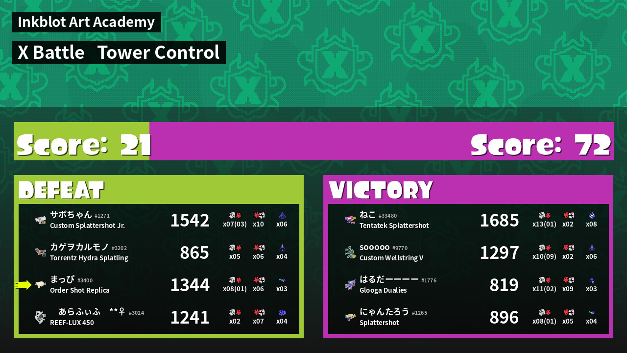 | Medals | #1 Overall Splatter #1 Enemy Splatter #1 Tower Stopper |