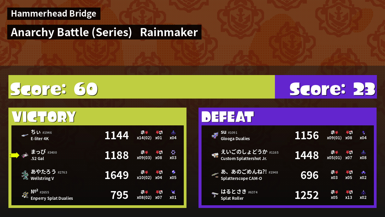 | Mode | Rainmaker - Anarchy Battle (Series) |