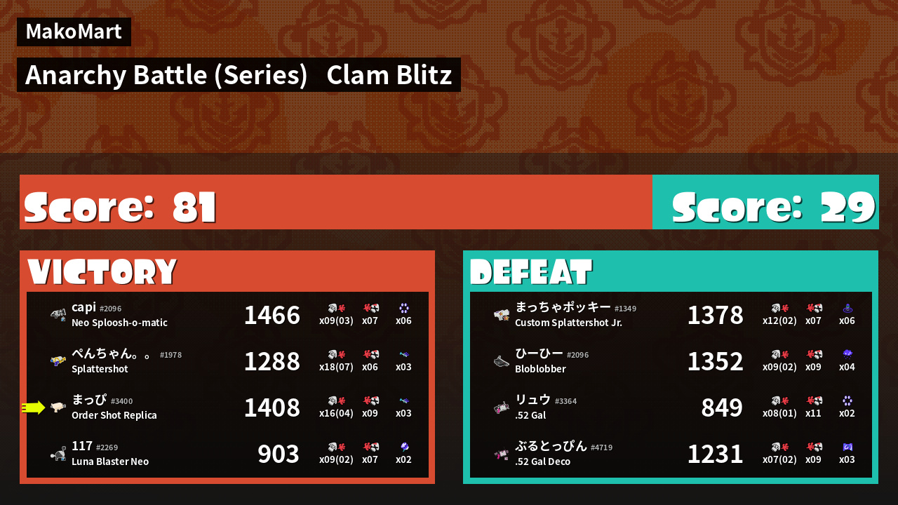 | Mode | Clam Blitz - Anarchy Battle (Series) |