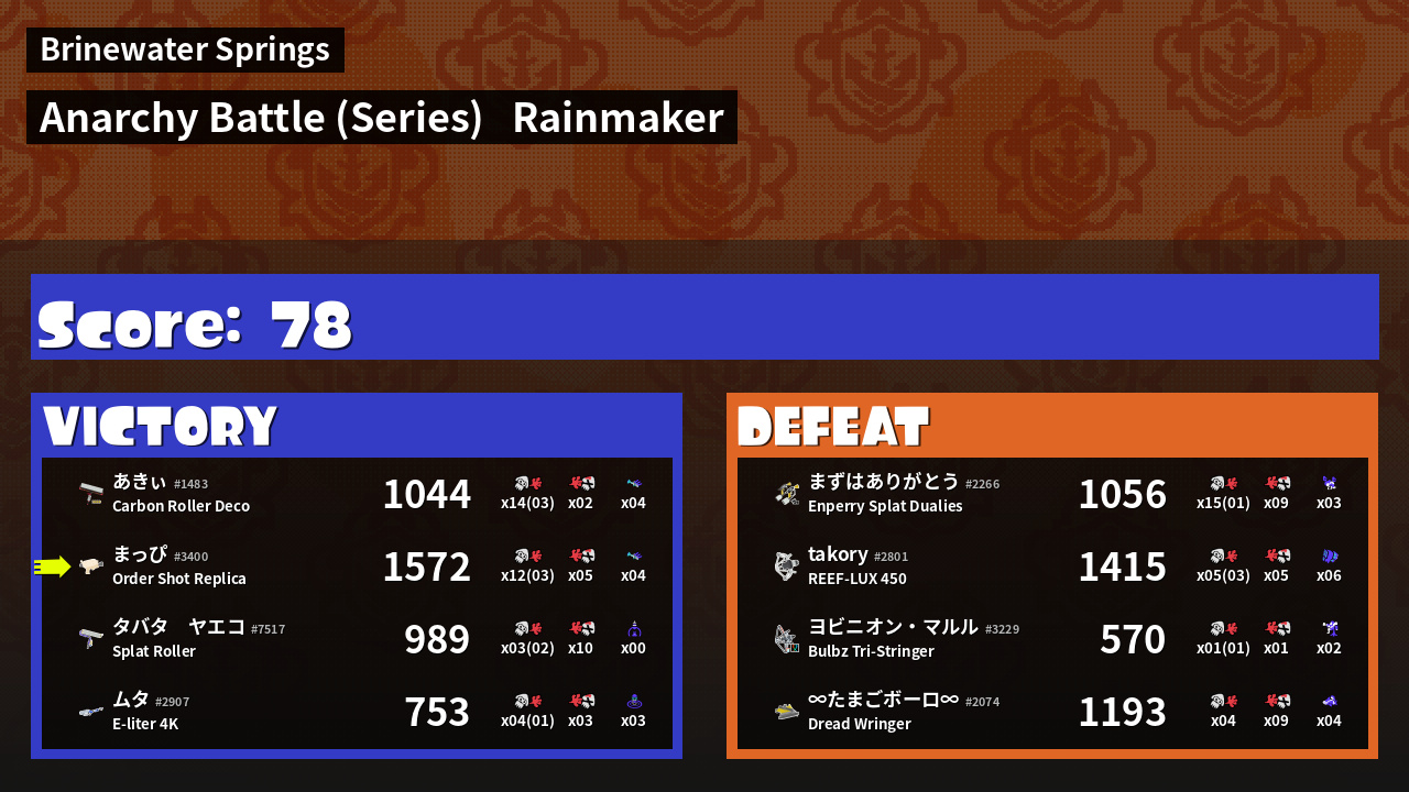 Results of まっぴ's Battle