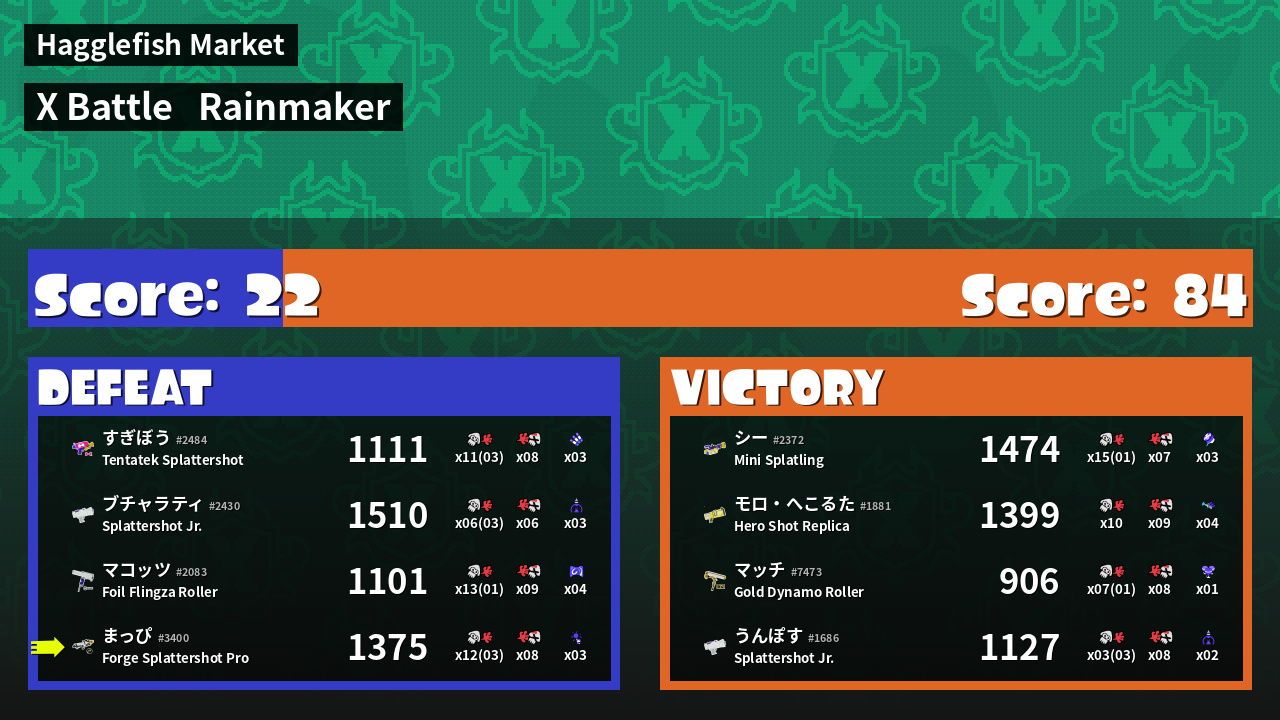 | Medals | #1 Popular Target #1 Splat Assister #1 Rainmaker Stopper |