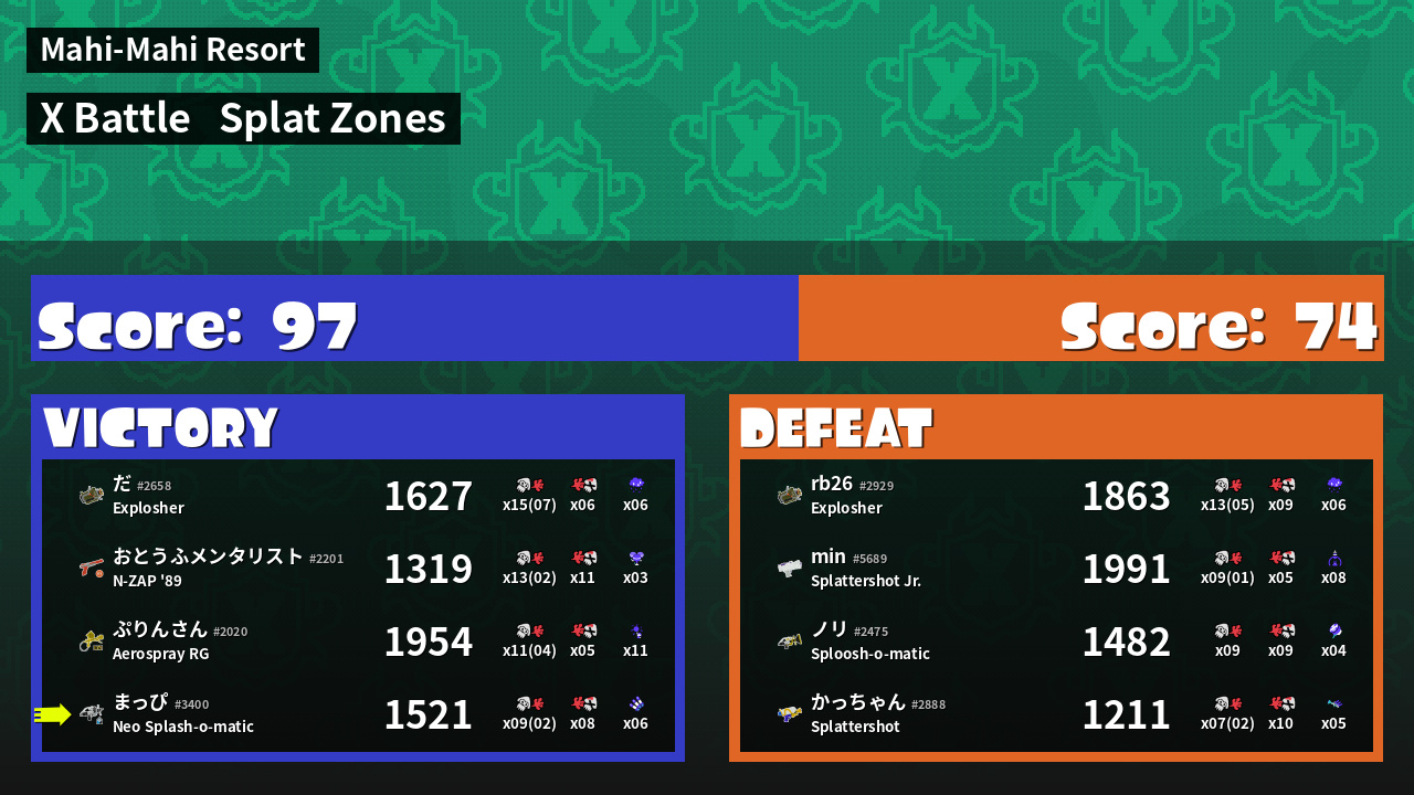 | Mode | Splat Zones - X Battle |