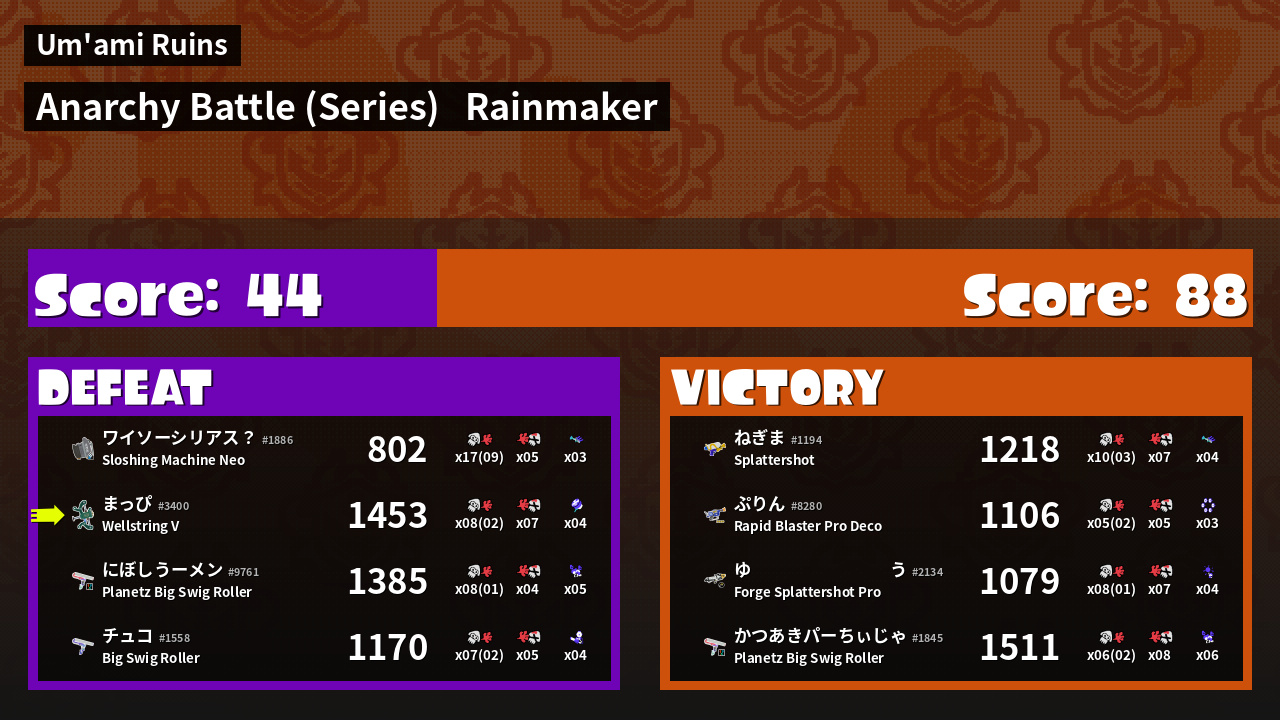 | Mode | Rainmaker - Anarchy Battle (Series) |