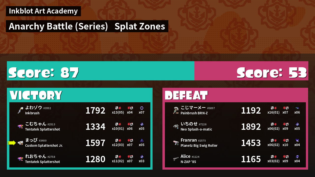 | Mode | Splat Zones - Anarchy Battle (Series) |
