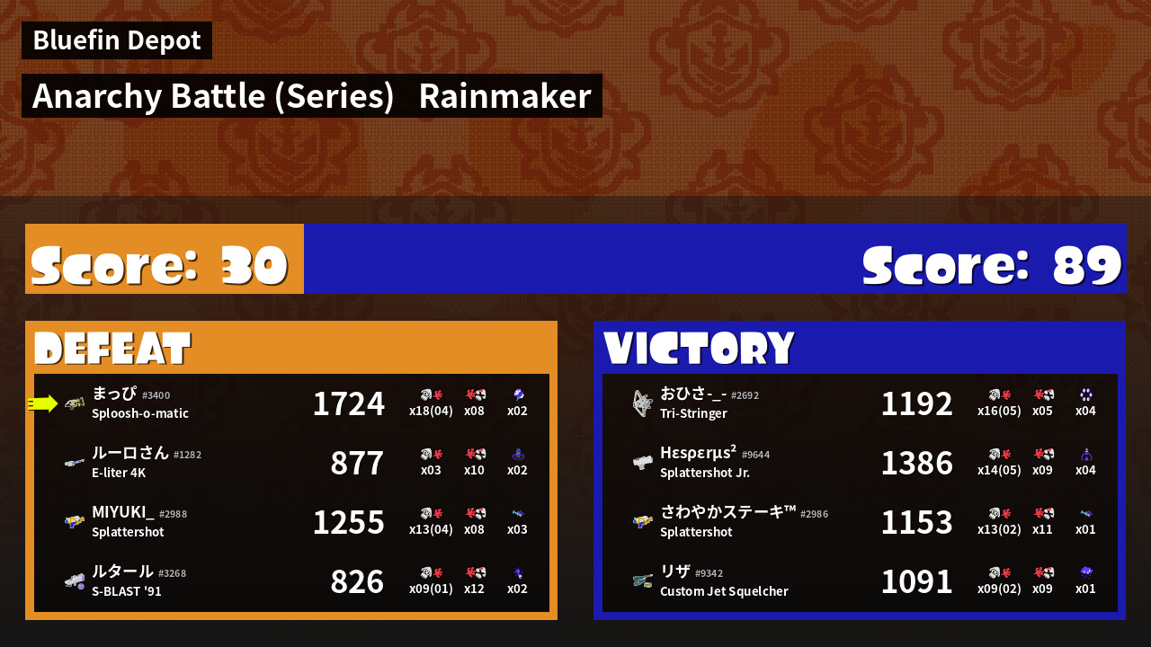 | Medals | #1 Overall Splatter #1 Turf Inker #1 Popular Target |