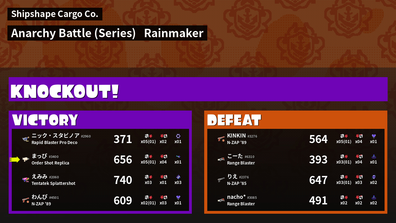 | Mode | Rainmaker - Anarchy Battle (Series) |