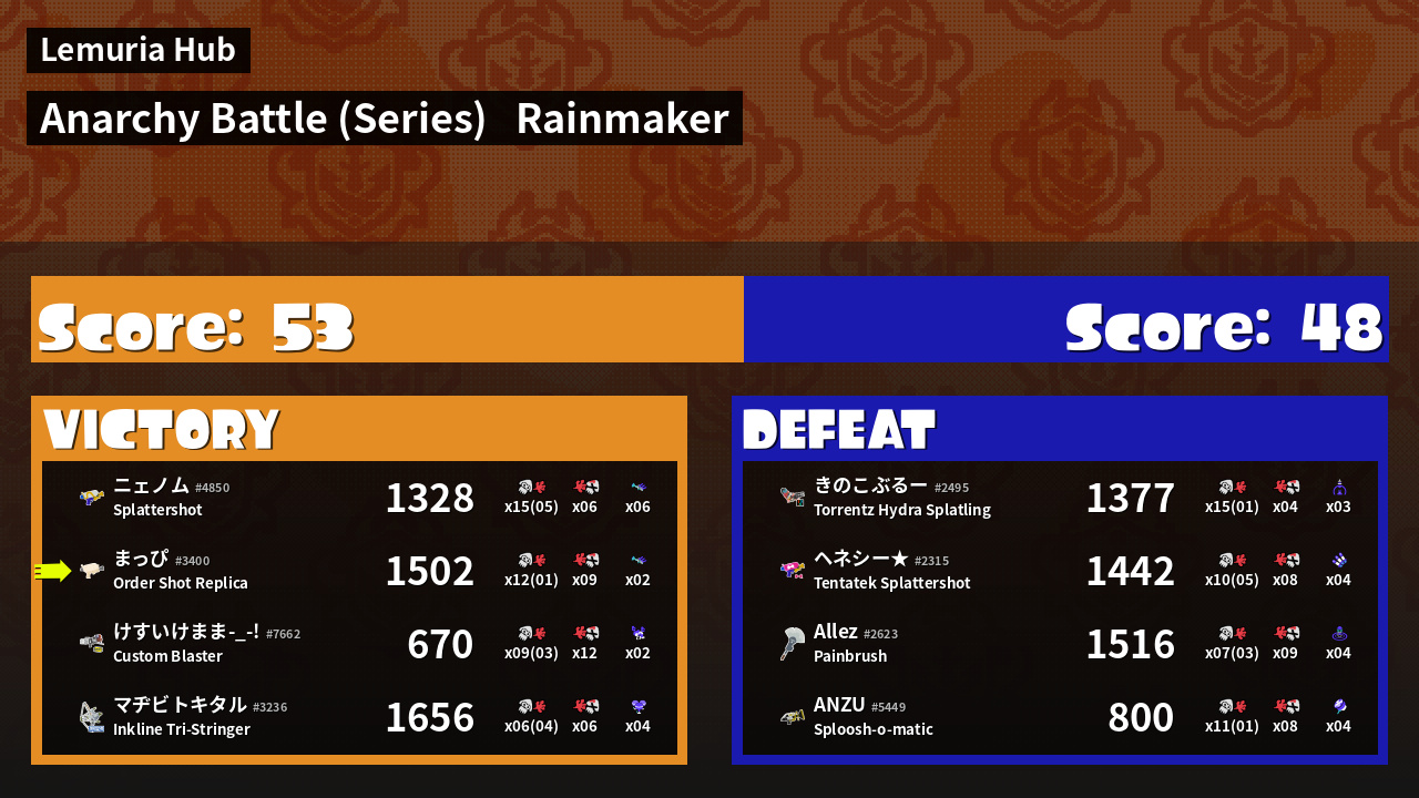| Mode | Rainmaker - Anarchy Battle (Series) |