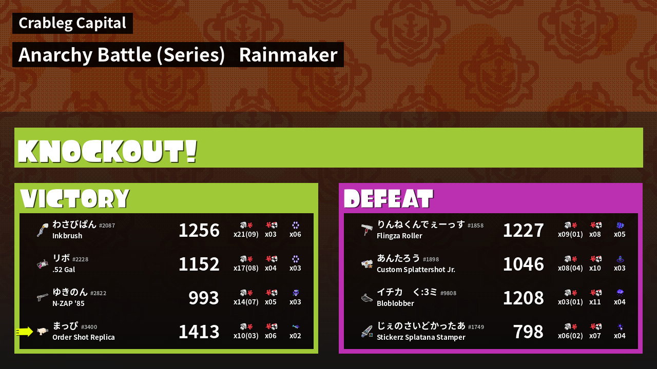 | Mode | Rainmaker - Anarchy Battle (Series) |