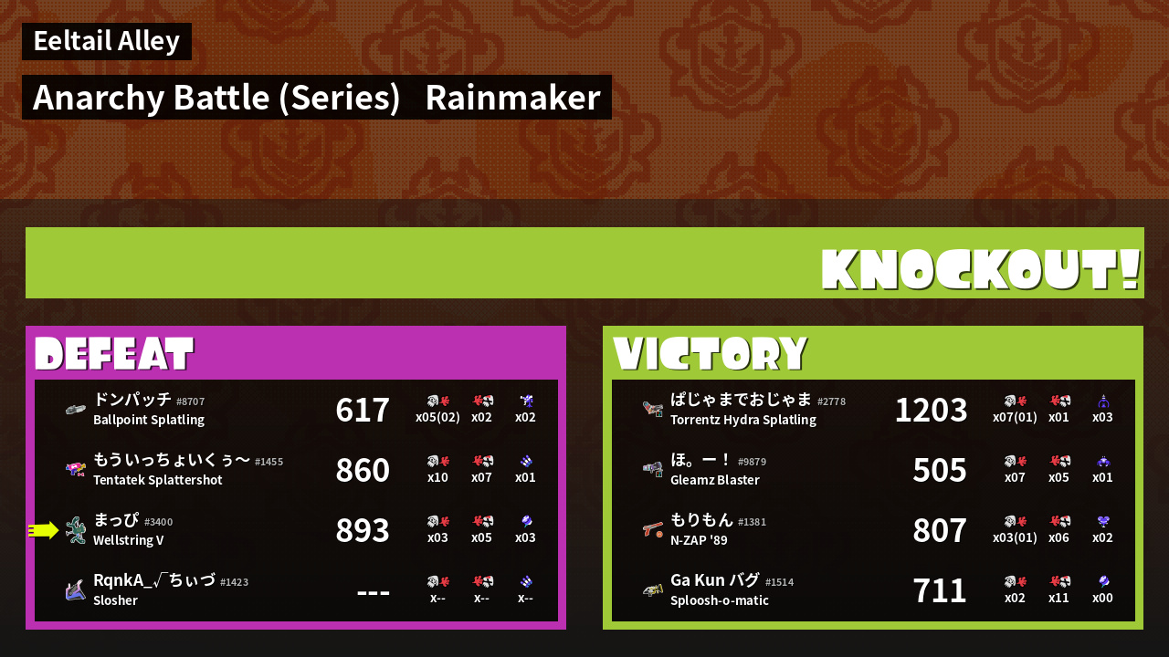 | Mode | Rainmaker - Anarchy Battle (Series) |