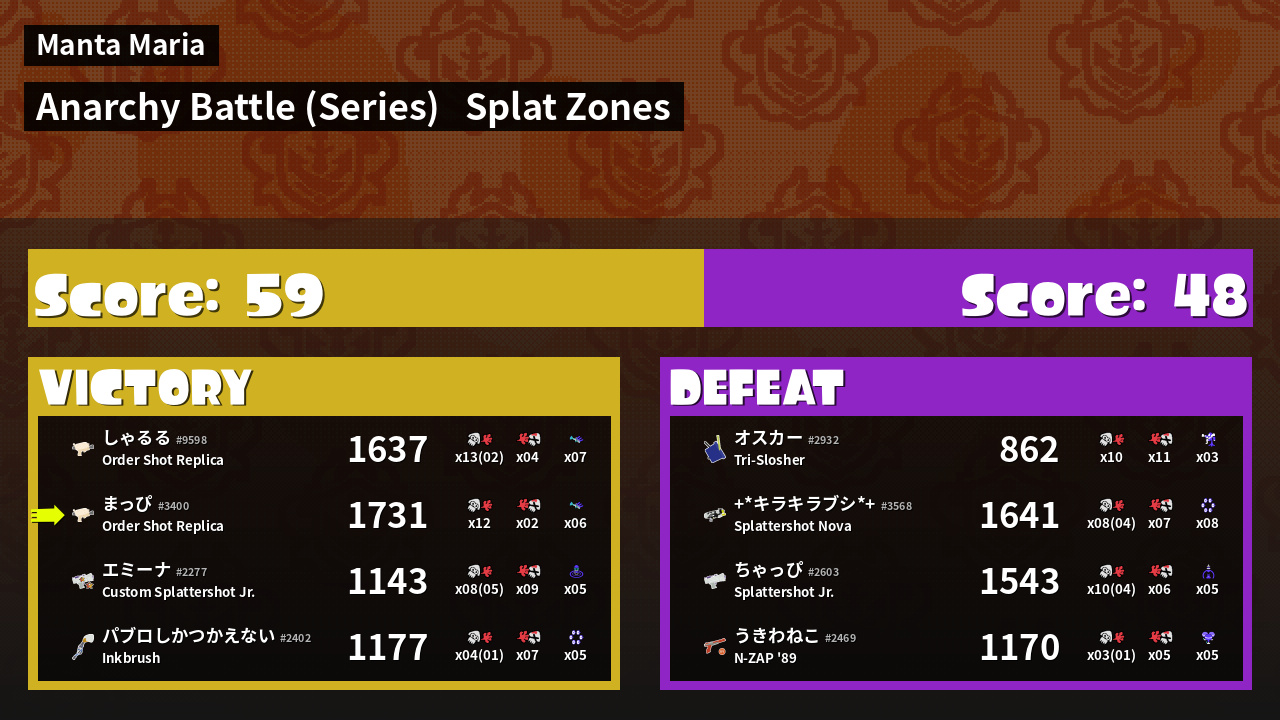 | Mode | Splat Zones - Anarchy Battle (Series) |