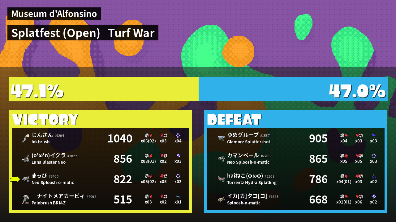 Results of まっぴ's Battle