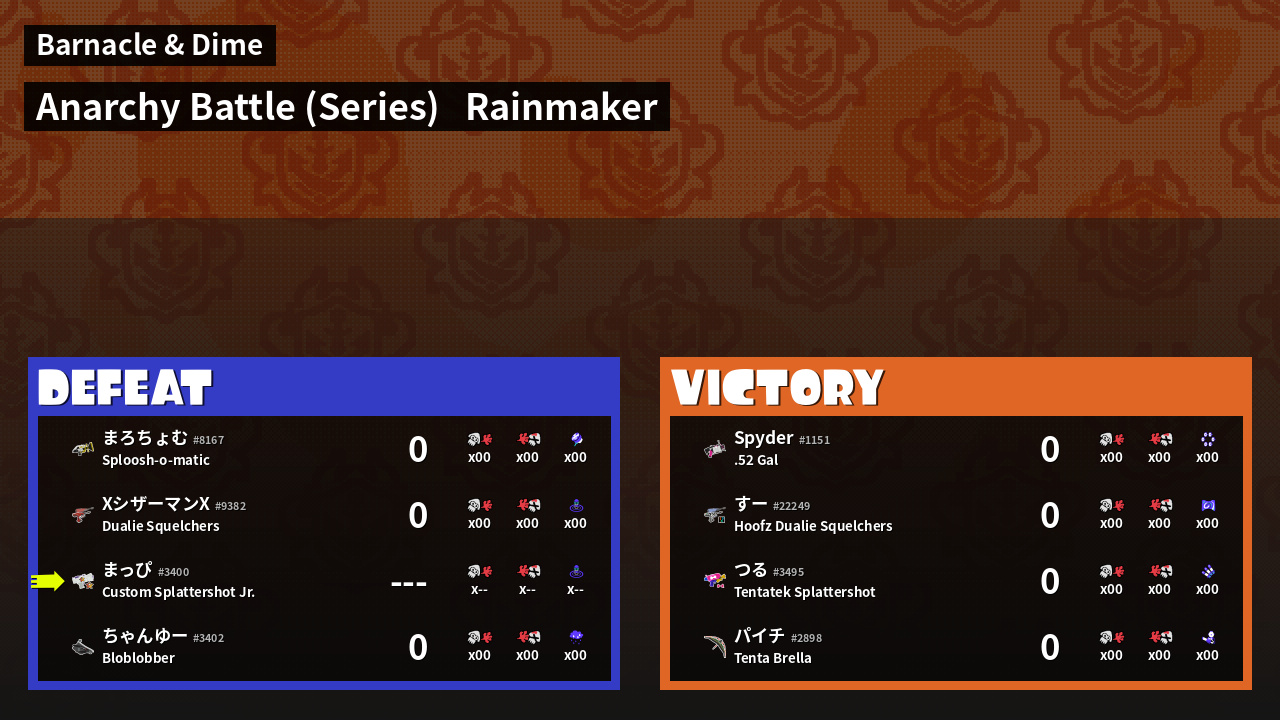 | Mode | Rainmaker - Anarchy Battle (Series) |