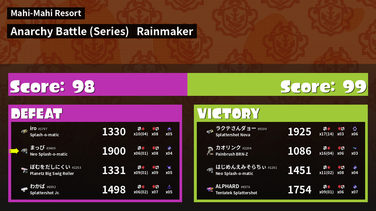 | Mode | Rainmaker - Anarchy Battle (Series) |