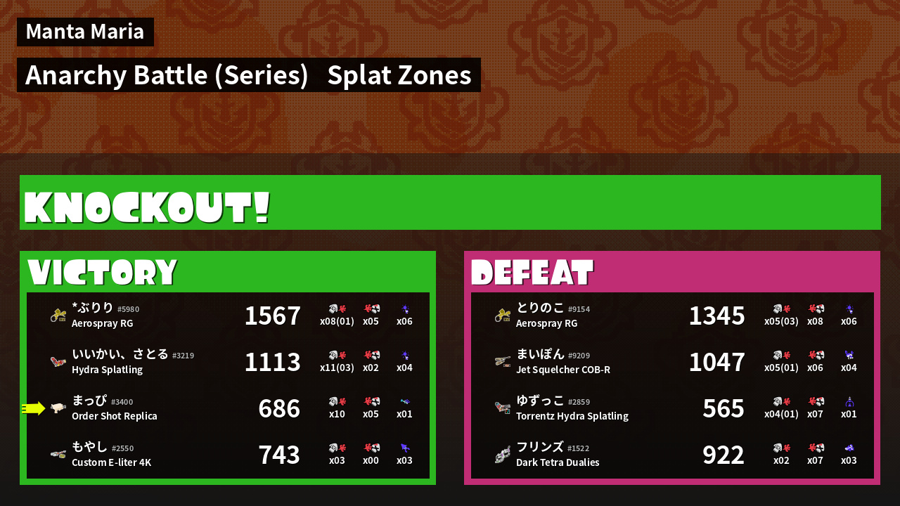 | Mode | Splat Zones - Anarchy Battle (Series) |