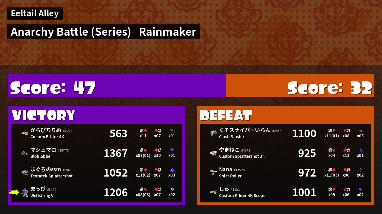 | Mode | Rainmaker - Anarchy Battle (Series) |