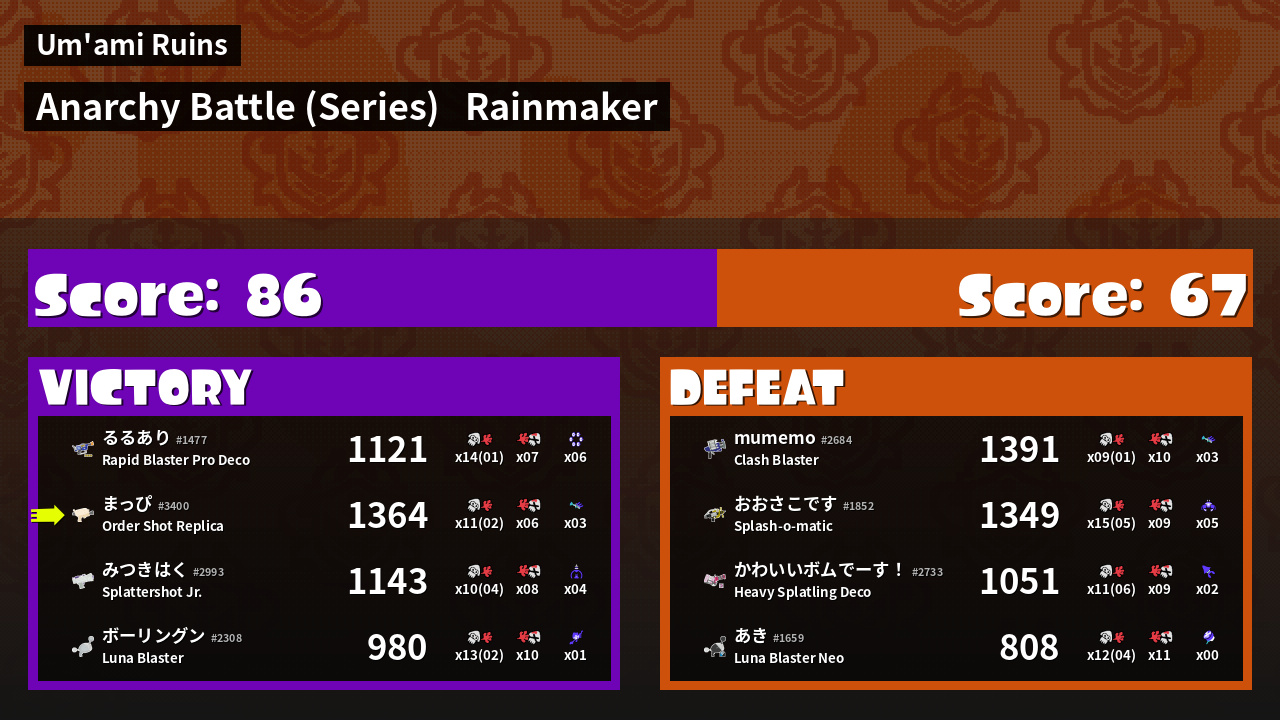 | Mode | Rainmaker - Anarchy Battle (Series) |