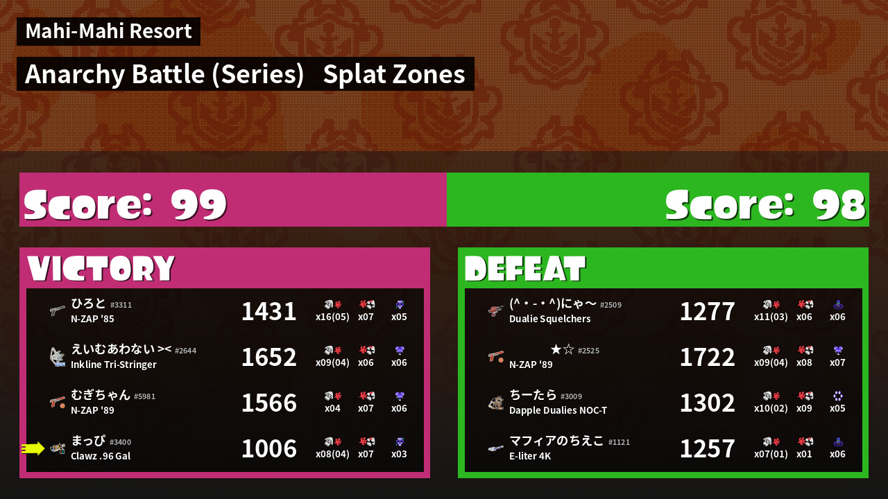 | Mode | Splat Zones - Anarchy Battle (Series) |