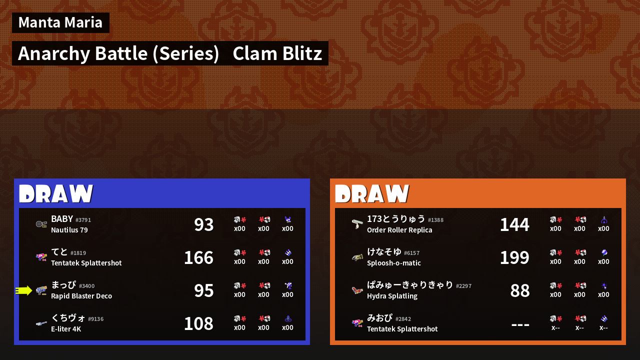 | Mode | Clam Blitz - Anarchy Battle (Series) |