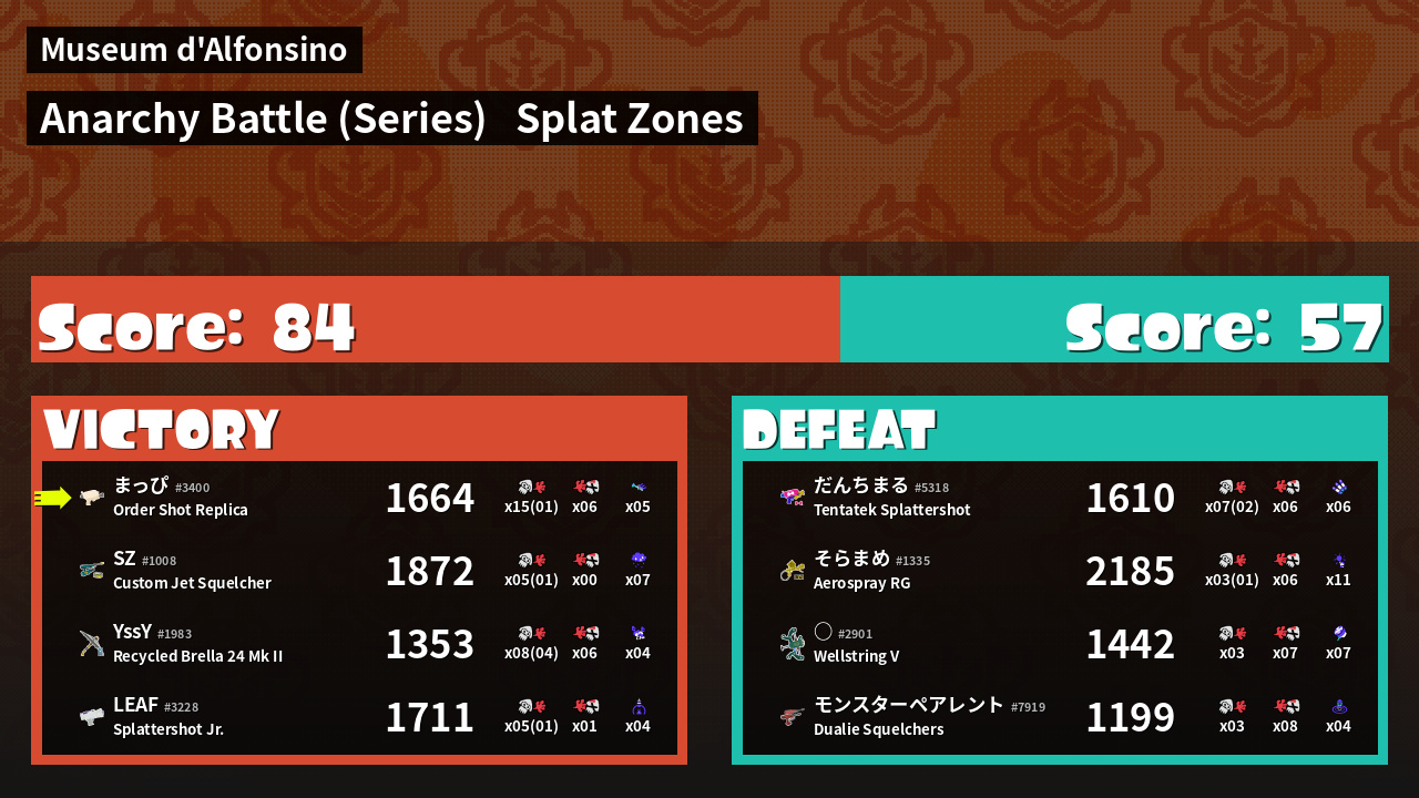 | Mode | Splat Zones - Anarchy Battle (Series) |