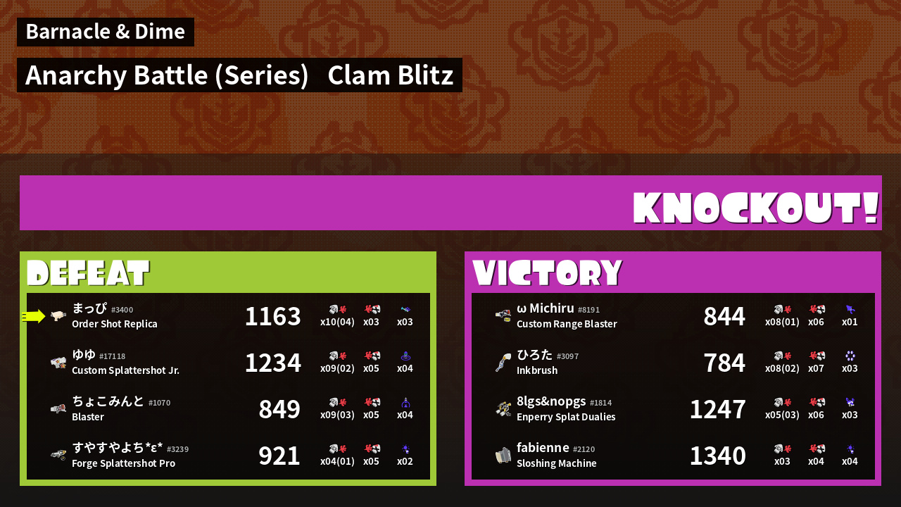 | Mode | Clam Blitz - Anarchy Battle (Series) |