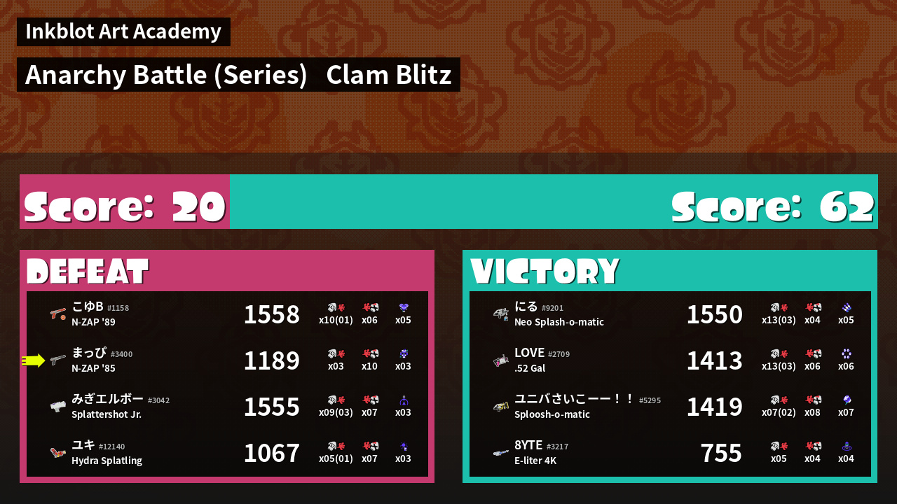 | Mode | Clam Blitz - Anarchy Battle (Series) |