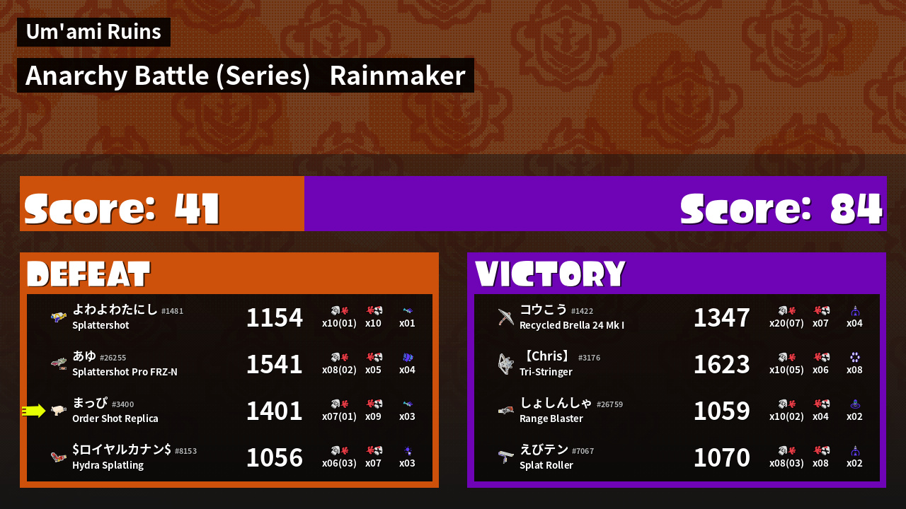 | Mode | Rainmaker - Anarchy Battle (Series) |