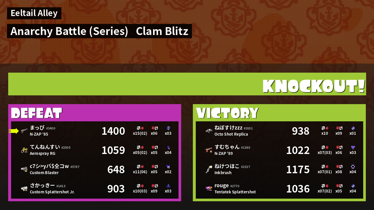 | Mode | Clam Blitz - Anarchy Battle (Series) |